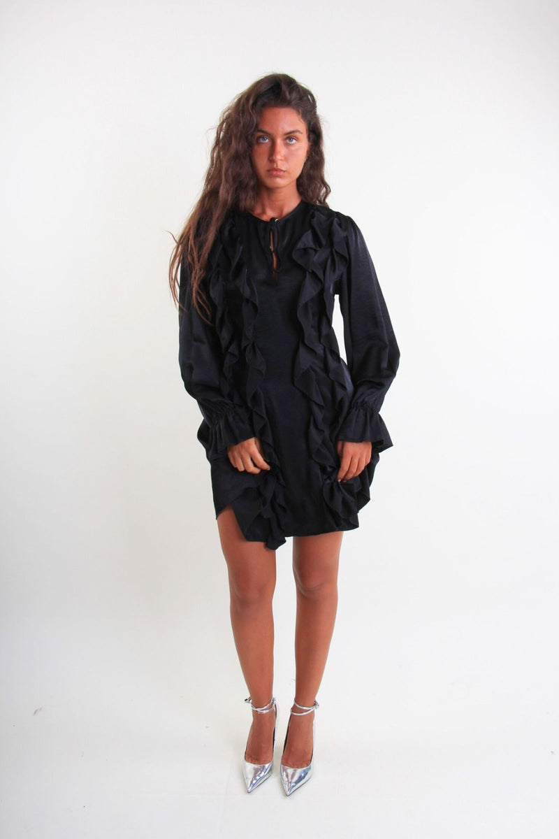 Abito nero in raso con volant
