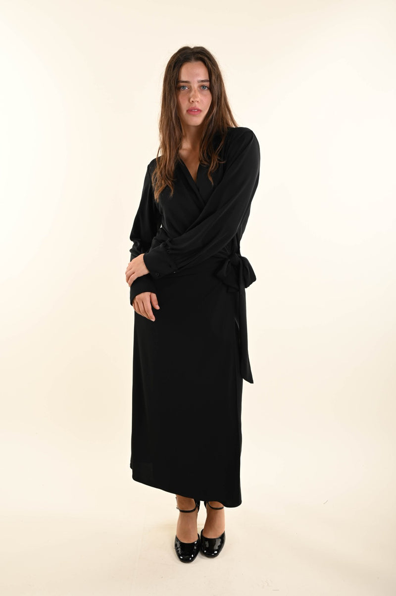 Abito lungo a portafoglio con fiocco